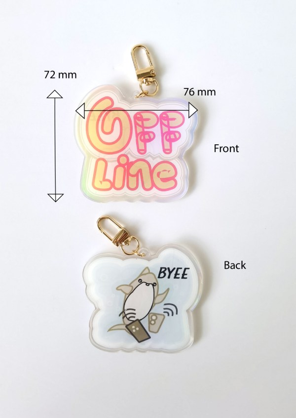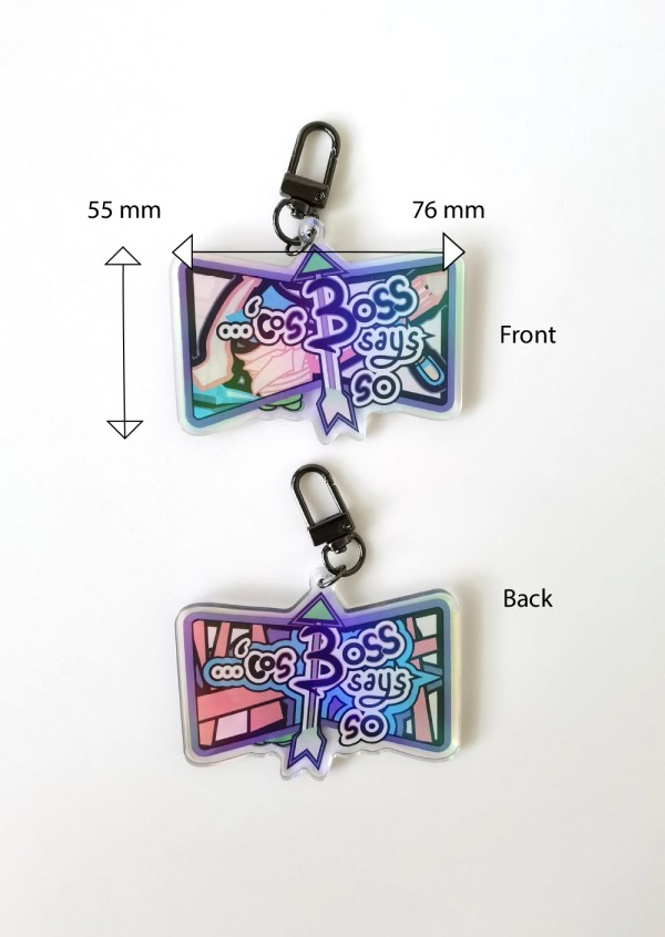 Cotton & polyester tote bag with an acrylic, double-sided design, holographic large keychain!